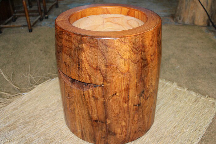 訳あり臼ではありますが日本を代表する銘木「欅(ケヤキ)」を素材にした、餅つきの木臼です。