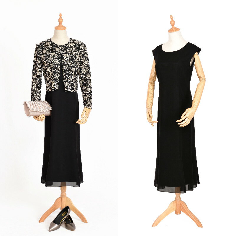 【5点セット レンタルドレス】 アンクルワンピブラックゴールドフラワーレース 9号 〜 15号 [靴 バッグ ネックレス ジャケット 黒 ブラック ベージュ 結婚式 おばあちゃん 祖母ミセス パーティー フォーマル 40代 50代 60代入学式 謝恩会 貸衣装 往復送料無料 ビープラン]